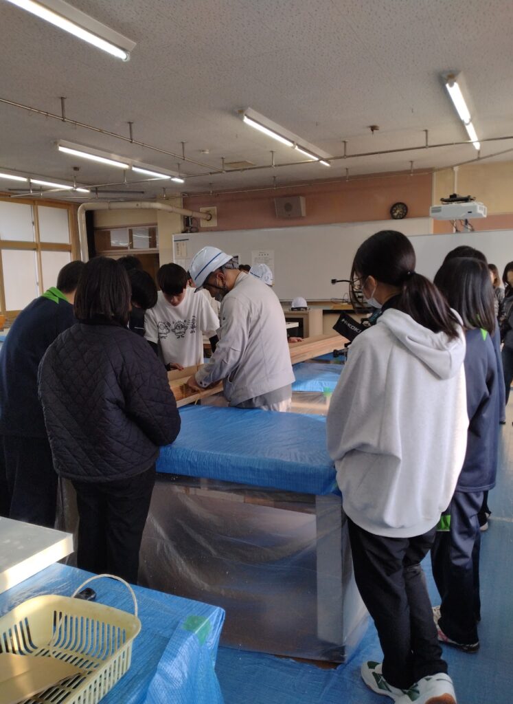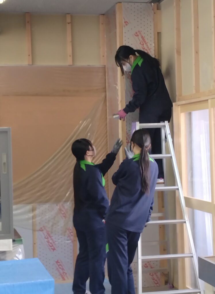 写真は翌日、翌々日に実施されたパソコン教室の断熱改修工事の様子です。今年は内壁の断熱工事を行いました。生徒諸君は安全に気を付けながら作業に取り組みました。体験を通して、知識や視野が広がっていく大切な「学び」です。ご指導は(株)大井様に、資材提供は(株)イノアックコーポレーション様にしていただきました。ありがとうございました。