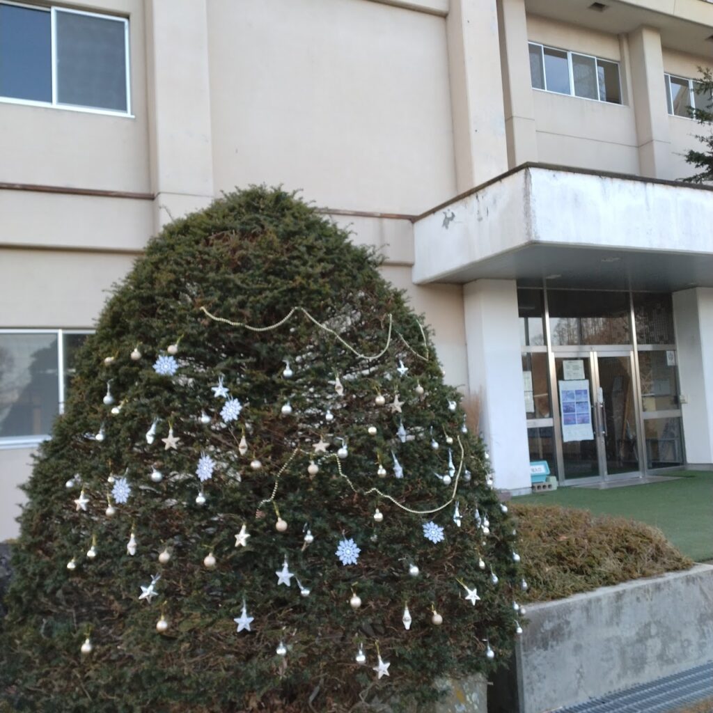 本日(12/11)出勤すると職員玄関脇の木がクリスマスツリー仕様となっていました!昨日の退庁時は暗くて気が付かなかったのですが、放課後にボランティア班の皆さんが飾り付けてくれたそうです。ありがとうございます。朝のスクールバスから降りてきた生徒諸君も「すごい!」「奇麗!」と足を止めて見入っていました。
