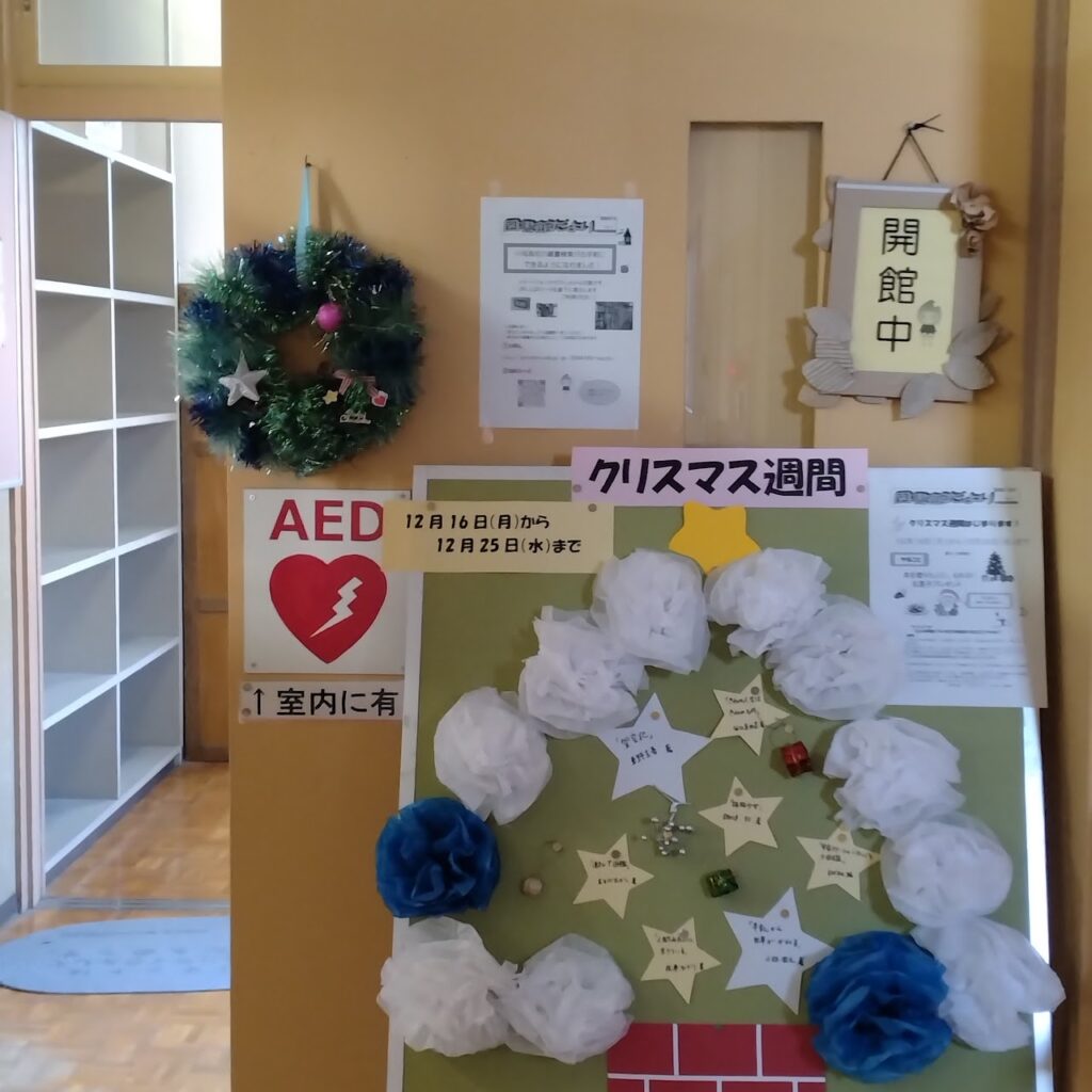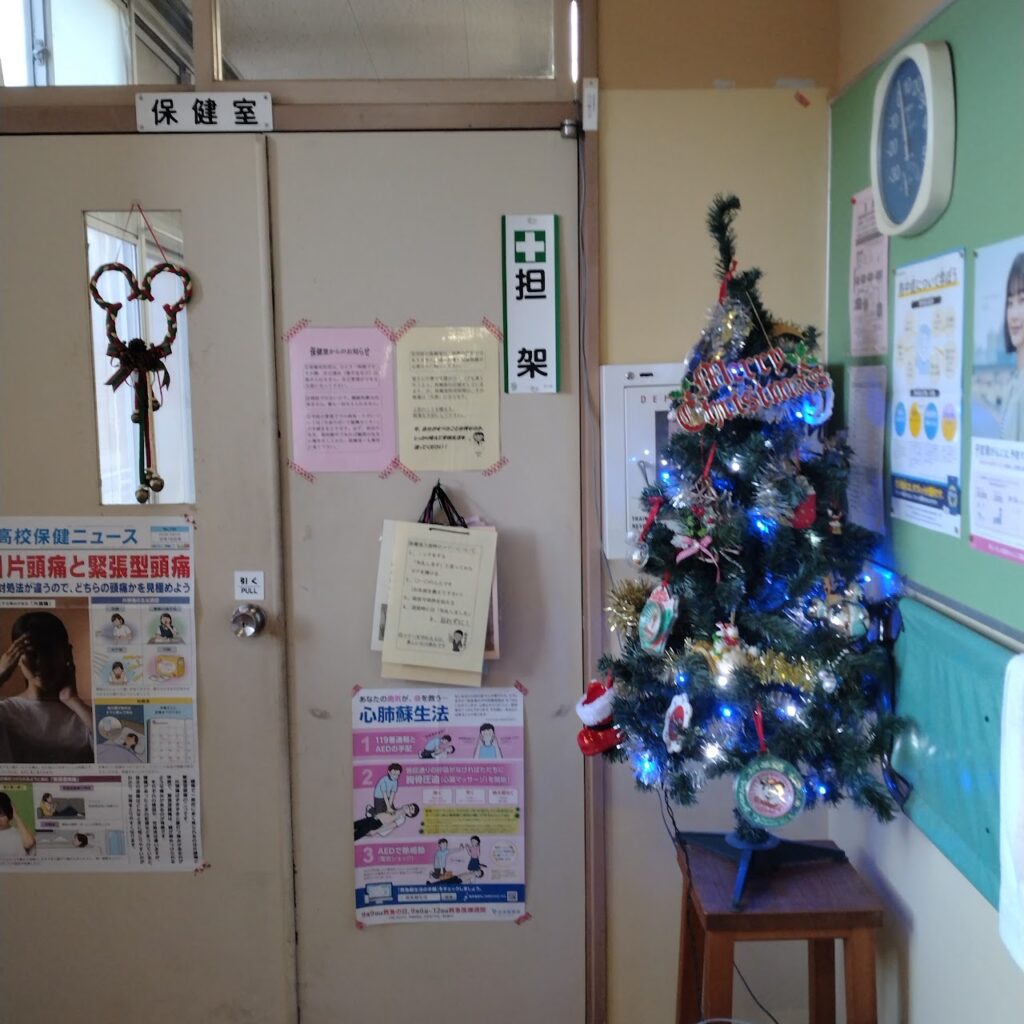 校内の写真は保健室前と図書館入り口で、しばらく前からこちらもクリスマス仕様です。外はもちろん廊下も寒いのですが、気持ちがほっとするスポットになっています。ありがとうございます。