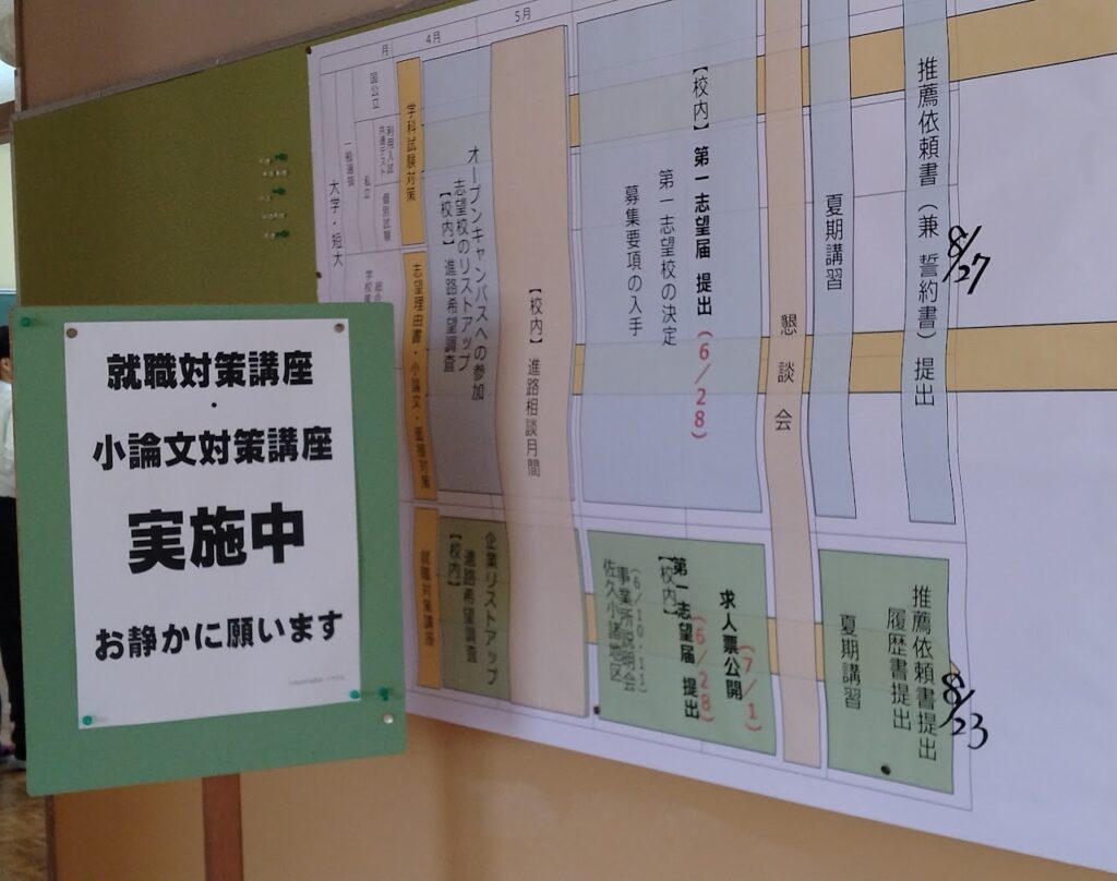 夏休み中に登校し、補習や就職対策講座、班活動に取り組んだ成果が秋に実を結ぶことを願っています。