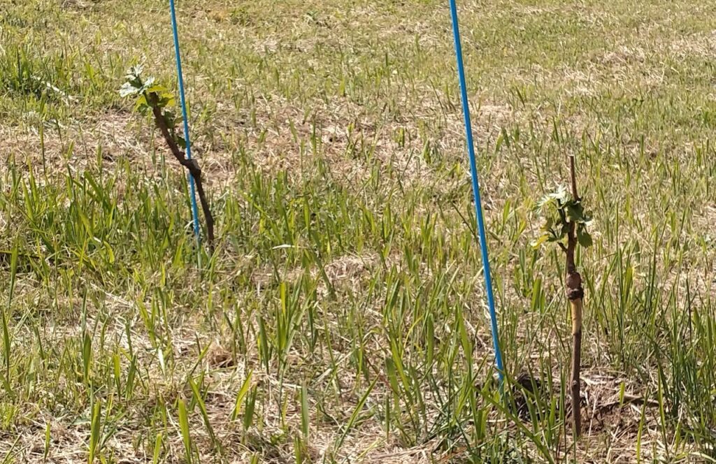 写真は出かける前に立ち寄ったブドウの苗を植えた校地(通称パクム農園)です。どの苗からも青々した芽が出ており、順調に育っているようです。