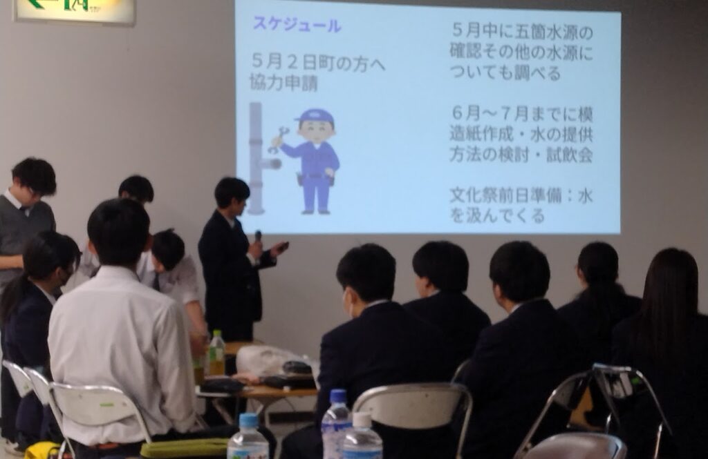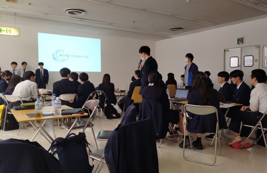 3年生は地域の方と協働しながら地域の資源に関する探究活動を行い、文化祭で展示・発表します。午前中のプレゼンでは2つのグループの発表を聞かせてもらいました。発表に対する質疑、意見交換も活発かつ和やかに行われていました。午後はグループごとに町の方との打ち合わせを行い終了となりました。