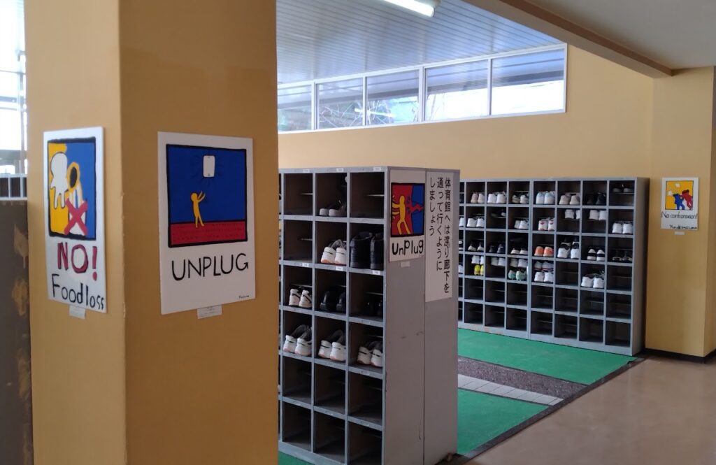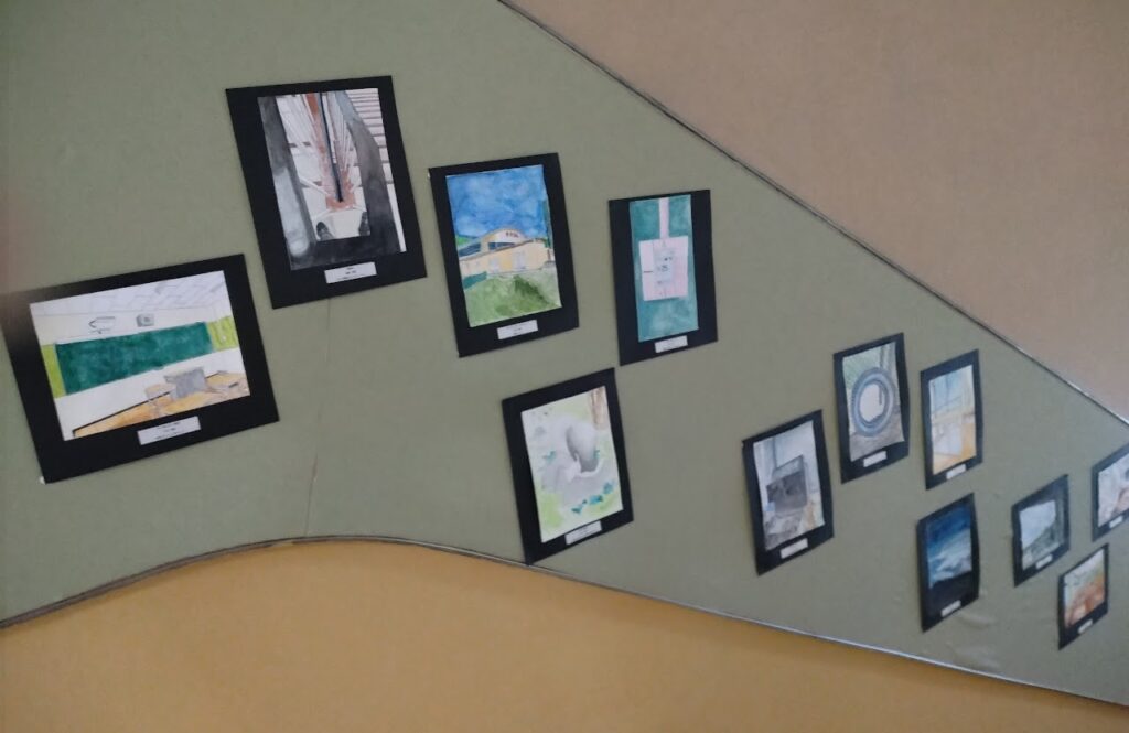 小中学校では生徒の作品がよく掲示されていますが、高校ではあまり見かけません。温かみを感じるスペースになりました。