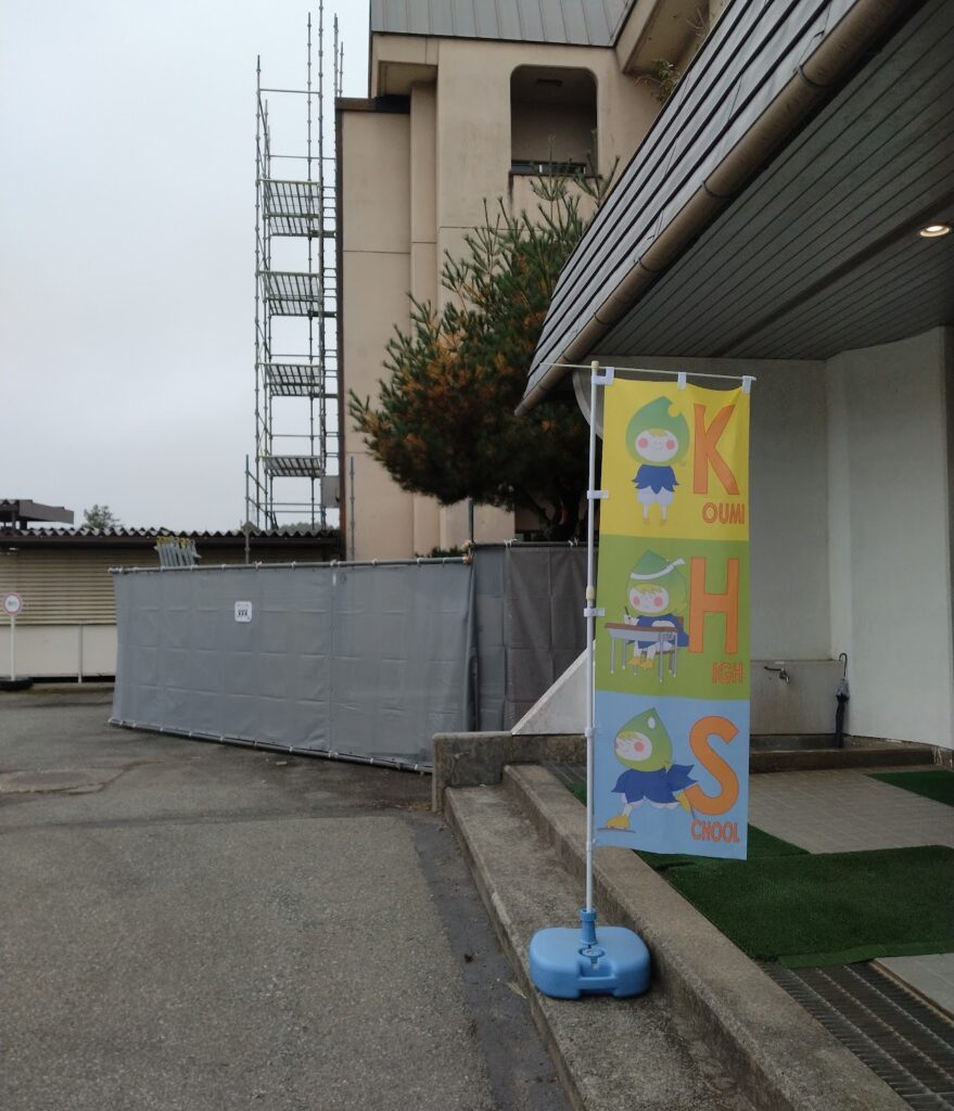 南校舎の改修工事の足場が組まれている関係で、授業中も音が出ます。ご不便をおかけしますが、ご協力をお願いします。
