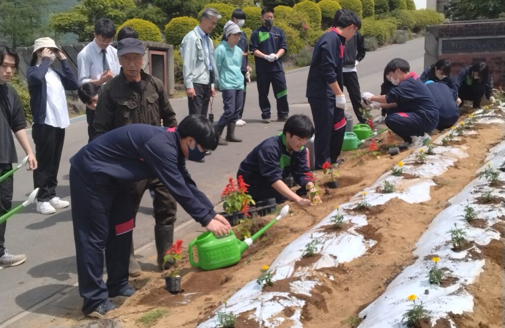 5月23日、中間テスト最終日、全日程の終了後に清美委員会を中心に作業を行いました。有志の生徒もたくさん集まり、手際よく作業を進めました。校門の前の花壇にたくさんのお花を植えてあります。ご来校の際はぜひ注目してみてください。